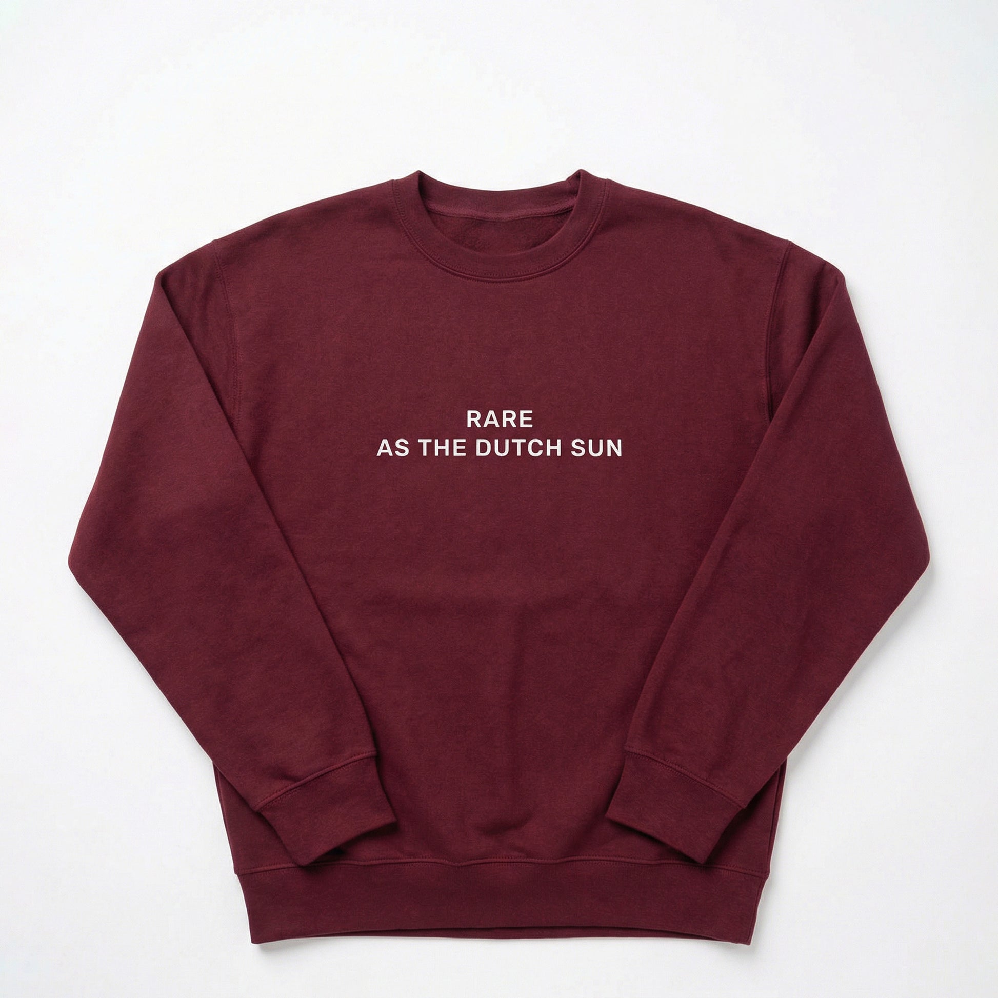 This premium crew neck sweatshirt features the minimalist front print “Rare as the Dutch Sun,” inspired by those rare, much loved sunny moments in the Netherlands. Crafted from soft, heavyweight fabric with a relaxed fit, it’s made for everyday comfort and effortless style, ideal for bright days and, of course, all the grey ones too.